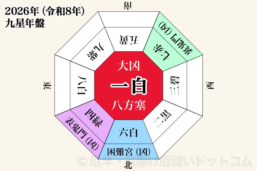 ※2026年(令和8年)の九星年盤(方位盤)|画像提供:厄年・厄除け厄祓いドットコム