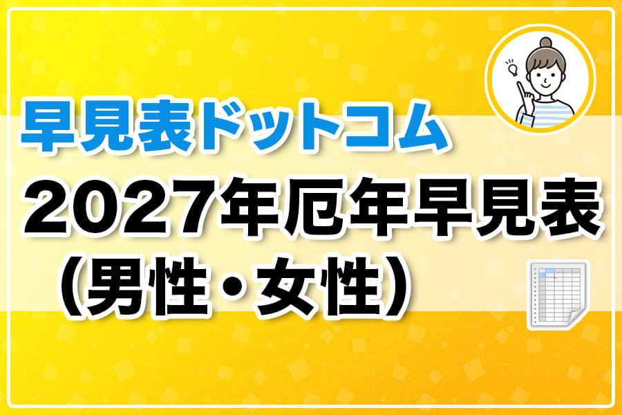 2027年(令和9年)にその厄年を迎える男性・女性の生まれ年を早見表でわかりやすくお伝えします。